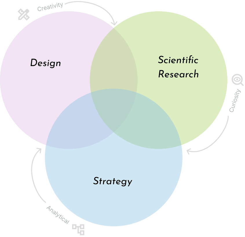 I work best in complex environments where the problem is undefined and where research leads design.
